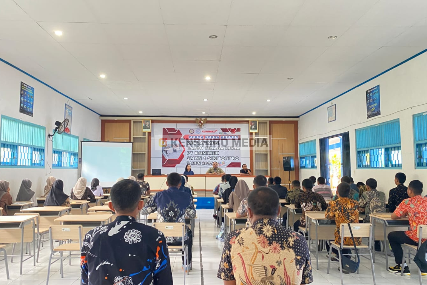 Giritontro, Kamis, 19 Februari 2026 — SMK Negeri 1 Giritontro menyelenggarakan kegiatan Bursa Kerja Khusus (BKK) bekerja sama dengan PT. KONIMEX sebagai upaya memberikan kesempatan kepada siswa dan alumni untuk memasuki dunia kerja. Kegiatan ini dilaksanakan selama dua hari, yakni Rabu, 18 Februari dan Kamis, 19 Februari 2026, dengan jumlah peserta sebanyak 51 orang yang terdiri atas siswa kelas XII dan alumni SMK Negeri 1 Giritontro. Program ini merupakan bentuk komitmen sekolah dalam menjembatani lulusan dengan dunia industri melalui proses rekrutmen yang terstruktur dan profesional.