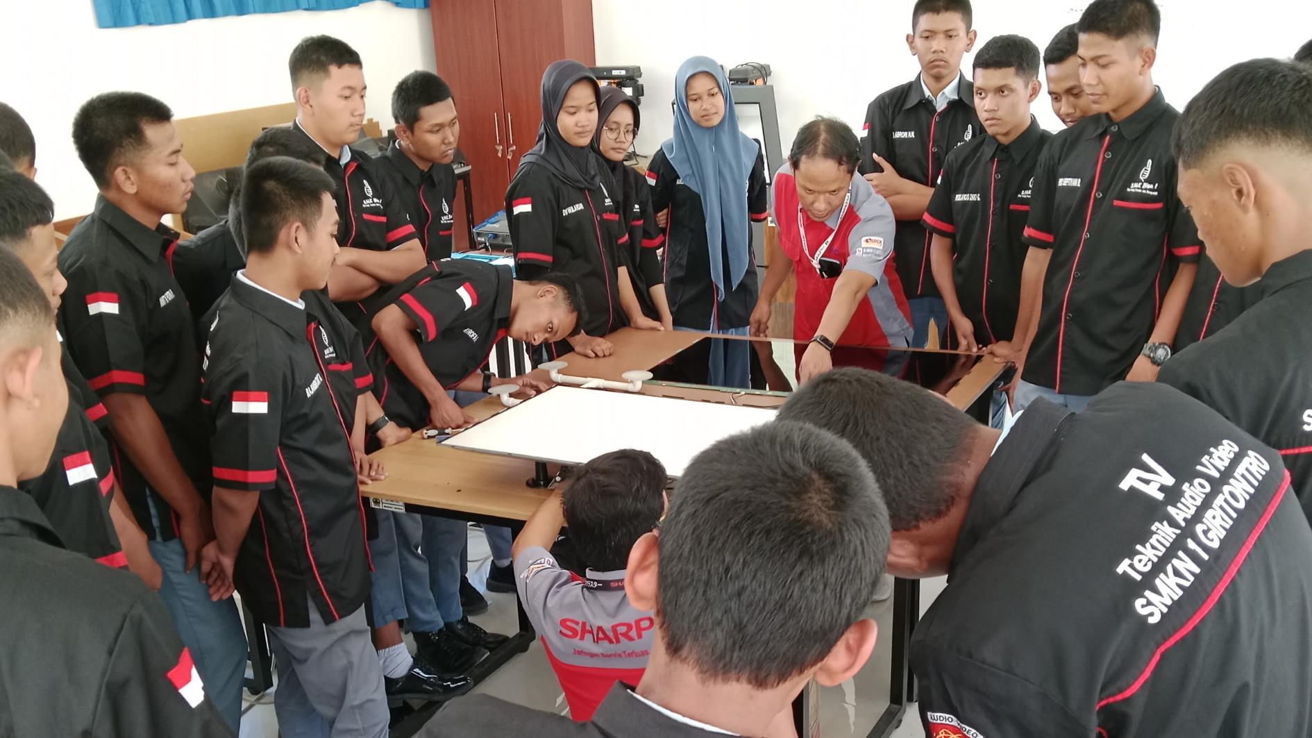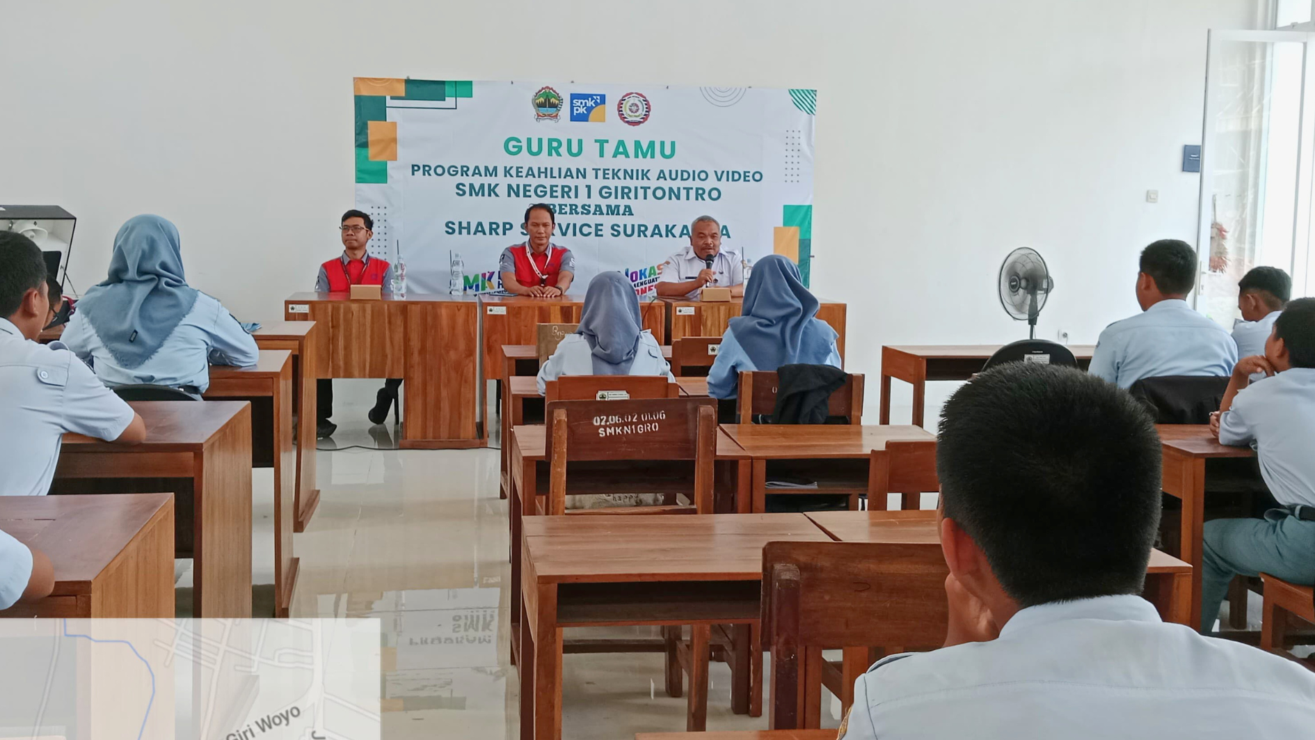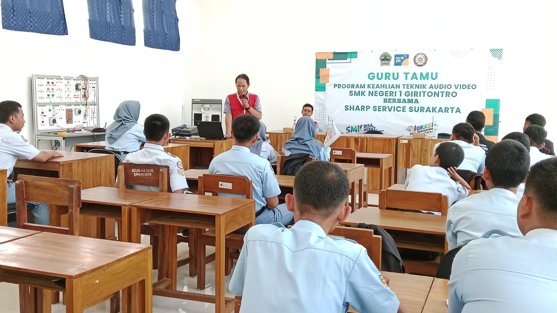 PT. Sharp Electronics Indonesia melalui Sharp Service Center Solo selaku service center produk Sharp wilayah Solo Raya akhirnya hadir di SMK Negeri 1 Giritontro pada hari Rabu, 11 September 2024 bertempat di gedung laboratorium Teknik Elektronika SMKN 1 Giritontro. Acara dibuka oleh Bapak Kepala SMKN 1 Giritontro, Bapak Mugiyono, S.Pd, M.Eng. Dan dilanjutkan dengan penyampaian budaya kerja di industri, pengenalan sejumlah produk dari line up Sharp Electronics dan diakhiri dengan sesi troubleshooting beserta perbaikan pada unit yang bermasalah. Kegiatan ini didampingi langsung oleh dua orang instruktur dari Sharp yakni, Bapak Yuono Adi dan Khoiri.
