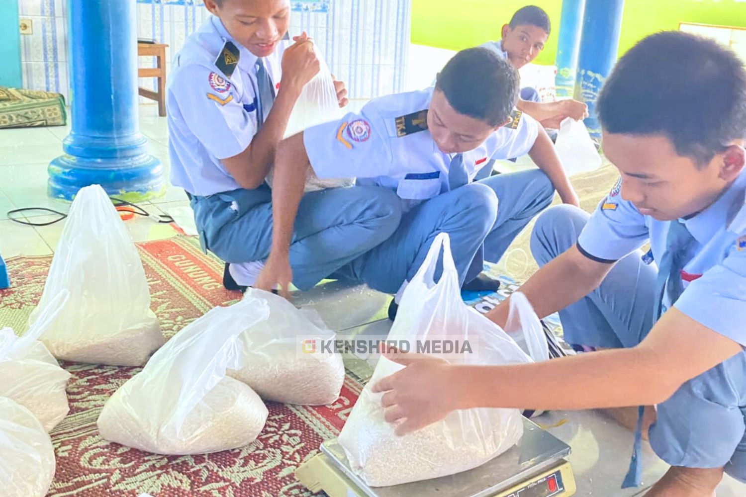 Guna menjamin keakuratan takaran, seluruh beras yang masuk kemudian ditimbang ulang secara menyeluruh. Proses verifikasi ini dilakukan agar tidak ada selisih berat yang dapat mengurangi hak para penerima manfaat. Setelah penimbangan rampung, para siswa bahu-membahu dengan panitia membungkus ulang beras ke dalam paket-paket dengan bobot yang seragam demi mewujudkan distribusi yang adil dan merata.