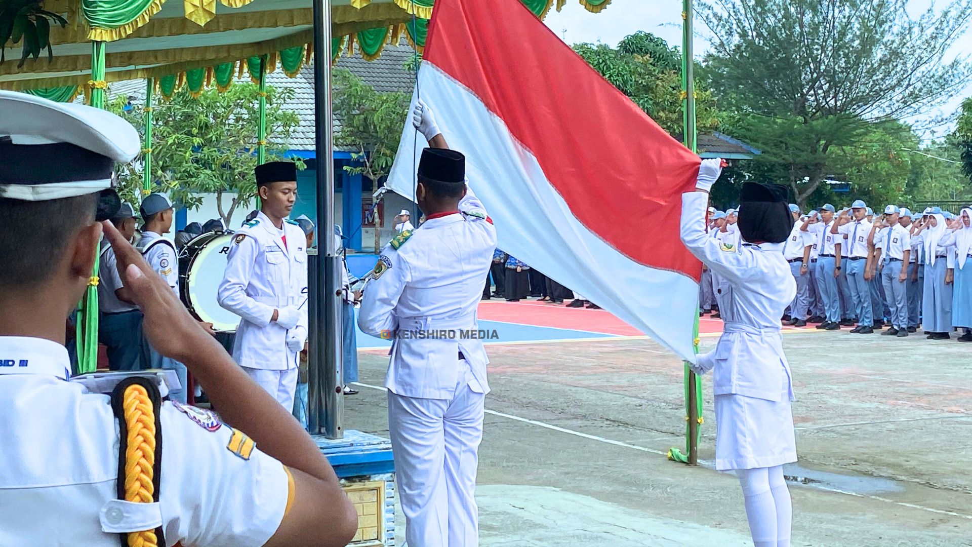 Pengibaran bendera merah putih diiringi lagu kebangsaan “Indonesia Raya” yang diiringi dengan Marching Band. Suasana terasa khidmat dan penuh semangat kebangsaan. Mengheningkan cipta dipimpin langsung oleh pembina upacara untuk mengenang jasa para pahlawan yang telah gugur membela kemerdekaan. Pembacaan pesan-pesan pahlawan nasional, yang berisi kutipan semangat juang dan pengorbanan tokoh-tokoh besar Bangsa Indonesia. Amanat pembina upacara. amanatnya, beliau menyampaikan pentingnya meneladani nilai perjuangan para pahlawan dan mengimplementasikannya dalam kehidupan sehari-hari, terutama dalam dunia pendidikan dan teknologi.